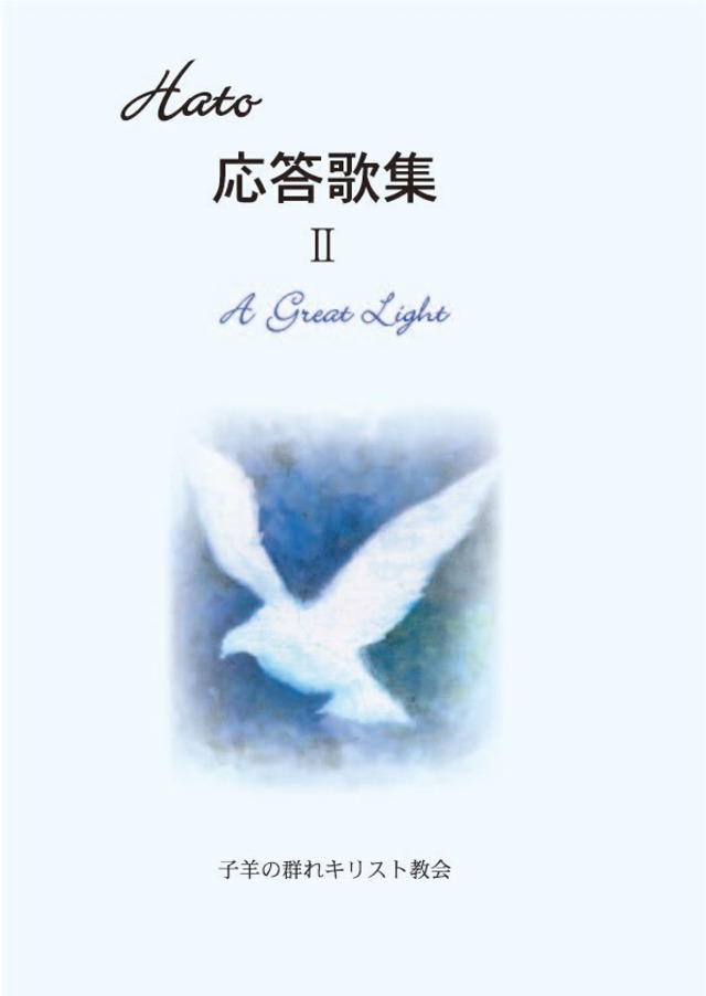 ハト応答歌集 2 A Great Light ー大いなる光ー A-14~23 2005/1/17出版 A4/80頁 子羊の群れの応答歌は、御言葉のさんびのひびきを味わいながら、会衆がそれに応えて唱うユニークなものです。 ※掲載された応答歌は、CDに収録して別途販売しています。CDとセットでのご購入をお勧めします。 1 主はわが避け所 (詩篇91篇1-11節) 2 日のいずるところから日の入るところまで (詩篇113篇) 3 大いなる光を見た (イザヤ9篇1-7節) 4 エッサイの芽 (イザヤ11篇1-9節) 5 ベツレヘムの星 (マタイ2章1-11節) 6 さふらんのように (イザヤ35章) 7 主はわたしを探り (詩篇139篇1-14節) 8 よみがえりの主(1)(2)(3) (ヨハネ20章1-18節) 9 五旬節の日 (使徒行伝1章3-9節、2章1-4節) 10 すまいの幕を張りひろげよ(全) (イザヤ54章)