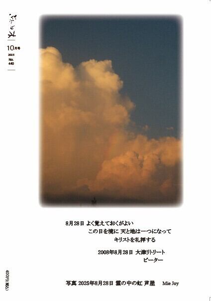 一つの伝道が、一つの立体さんびが、一人の人の人生まで変えてしまった「新しいよろこびの時」。南半球から吹き始めたこの新しい風は、10月号を通してさらに多くの方々に新しいよろこびの時をもたらすと信じます。