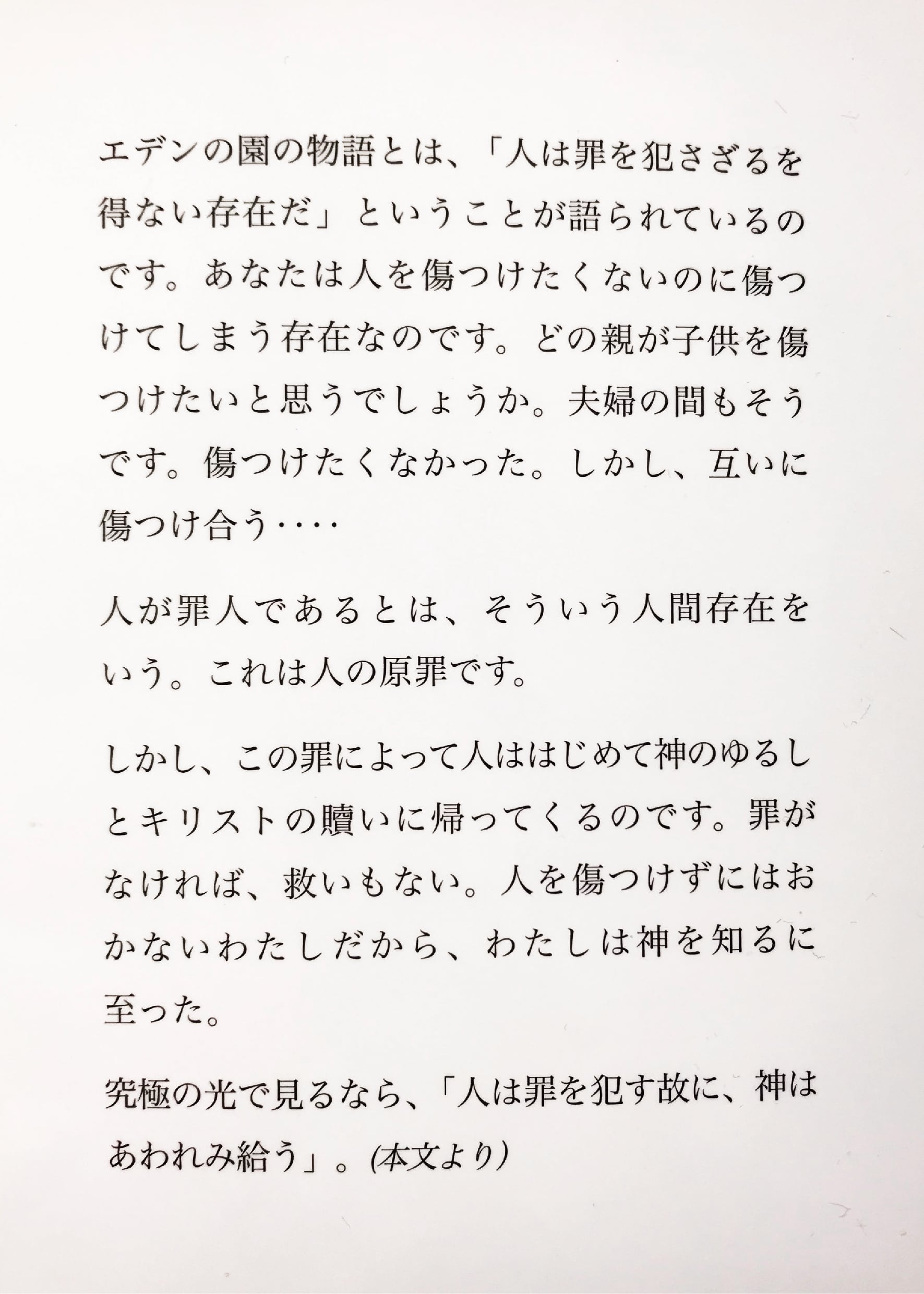 聖書は何を語っているか、神は私たちに何を願っておられるのか、みことばから十字架の「いのち」のエッセンスが分かりやすく書かれています。「ここに生きる秘訣があった」という感動が迫る一冊です。