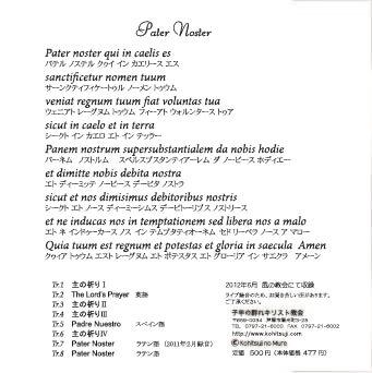2001年の同時多発テロの直前に与えられた「主の祈り」のさんびに加え、英語、スペイン語、ラテン語も含め、全7曲が収録されています。地が騒ぐ時こそ、「主の祈り」に心を合わせ、さんびを流すことが願われていると信じます。