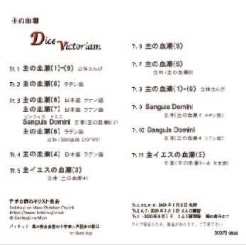 キリスト・イエスの血潮の勝利を告げよ。「主の血潮(1)-(9)」、「サンウィス ドミニ」など、日本語とラテン語の美しい血潮の立体さんびがたくさん、収録されています。CDから流れる血潮の勝利をたたえるさんびが、コロナに、巨大台風に、地下深くにまで注がれ、主の勝利をもたらすと信じます。
