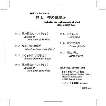 総会コンサート本番とは、一味違ったさんびのひびきです。神様の愛とやさしさに包まれ、CDと共にさんびして下さい。プレゼントにもどうぞ。